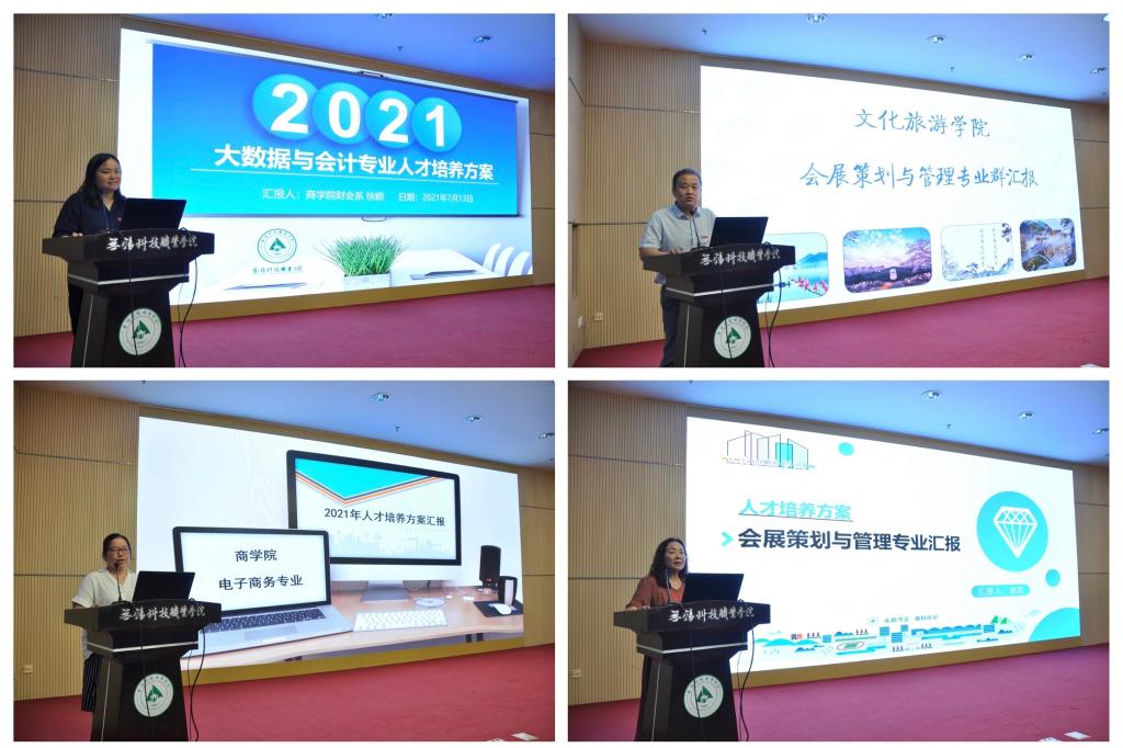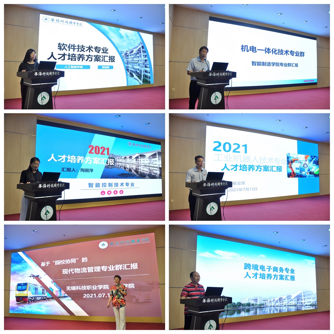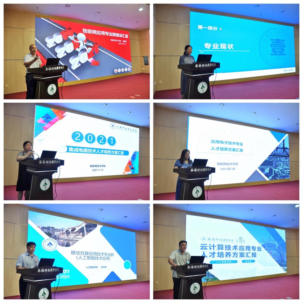 本次审定会以抽签的方式确定汇报专业。结合无锡高新区6+2+X产业布局、无锡高新区推进长三角一体化发展行动计划、环太湖科创带等重大战略导向,6个专业群、2个新设专业、12个现有专业分别进行了汇报。汇报内容逻辑清晰、图文并茂、特色鲜明,在课程体系构建、专业文化打造、教学资源规划等方面较去年有了明显提高。基于2021新版专业目录,多个专业也对建设思路进行了重新地审视和构划。专家们用心聆听,细心查阅材料,对人才培养目标的针对性、课程体系的科学性、培养方案的规范性等进行审定,对各专业群所做的努力和已取得的成效给予肯定,同时也从加强专业整体设计、创新人才培养定位、跨界开发课程等方面提出优化建议。