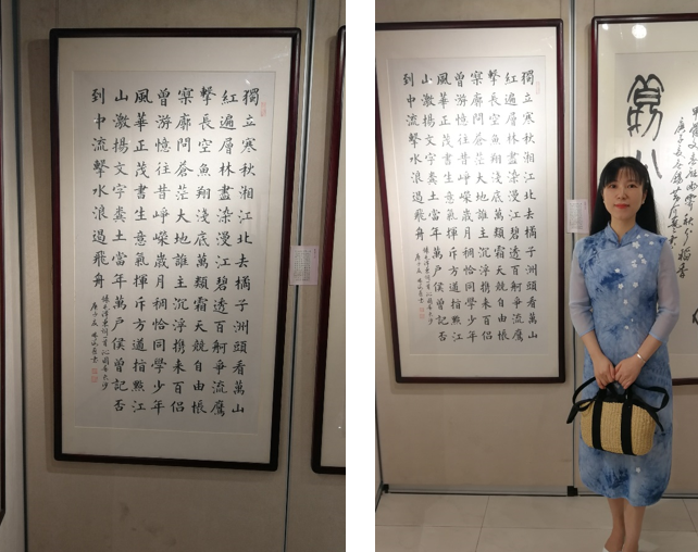 林海燕老师自幼酷爱书法,她的作品功底深厚,灵气涌动,清秀醉人。她曾在高职院校从事美术专业教学十余年,1999年国画作品《梅花主轴图》、《高山流水》曾入选镇江市青年书画家作品展,2018年任教澳门铁盘算盘490777文化创意学院的《艺术素养》课程时,曾在专业汇报展览中展出楷书、行书及草书书法作品20余件,2020年行书书法作品《立德树人》获校第四届“三廉日”主题教育系列活动暨“校园廉洁文化作品师生创作大赛”优秀奖。此次选择毛泽东诗词《沁园春.长沙》为书法创作题材,旨在激励广大青年要勇做走在时代的前列的奋进者、开拓者和奉献者。激发全市广大盟员爱党爱国爱盟的热情,为勇做全省“争当表率、争做示范、走在前列”排头兵和勇创全省“强富美高”建设示范区提供强大力量支持。