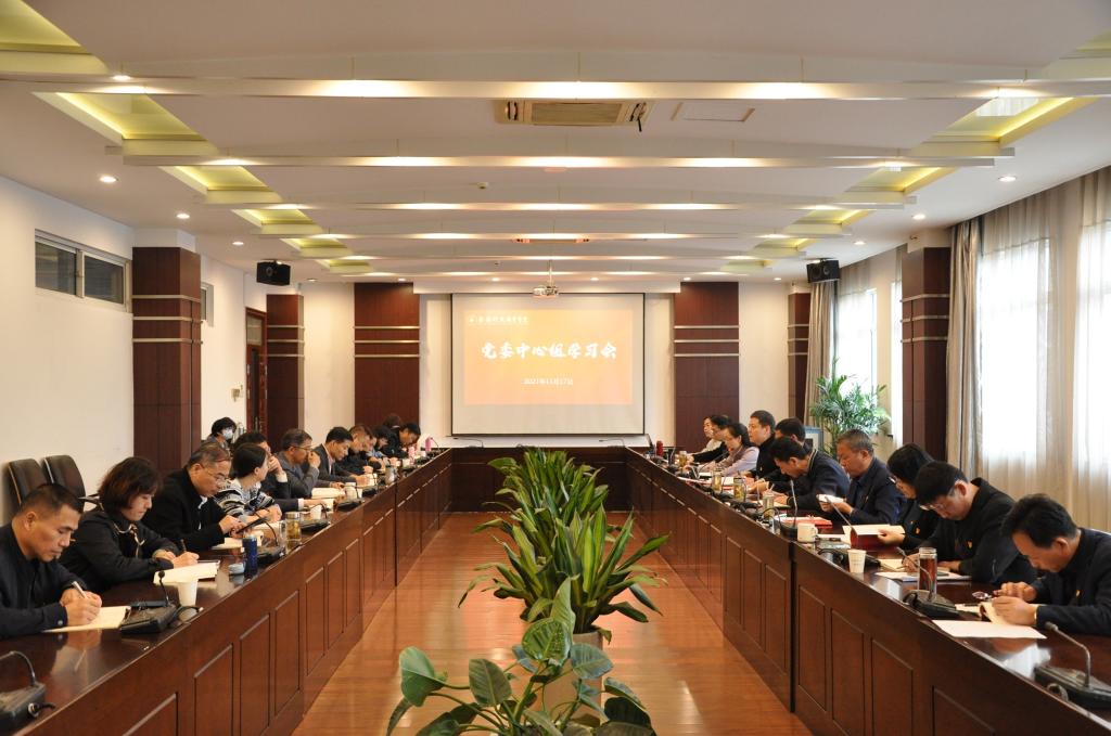 11月17日上午,校党委理论学习中心组召开学习会,专题学习党的十九届六中全会精神。校党委书记张国华、校长孙兴洋等中心组全体成员参加学习,会议由校党委副书记、副校长瞿立新主持。