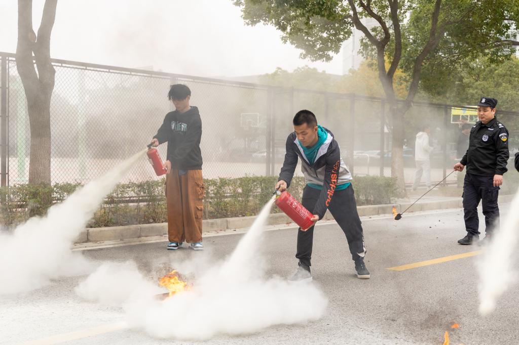下午1点整,伴随消防警报的拉响,演练正式开始。全校新生从各自的宿舍内迅速、有序、安全的撤离到指定的地点;学生疏散演练完毕后,新吴区消防救援大队官兵开展了高空救人演练项目,并介绍灭火器的使用方法以及组织新生代表进行灭火演练。