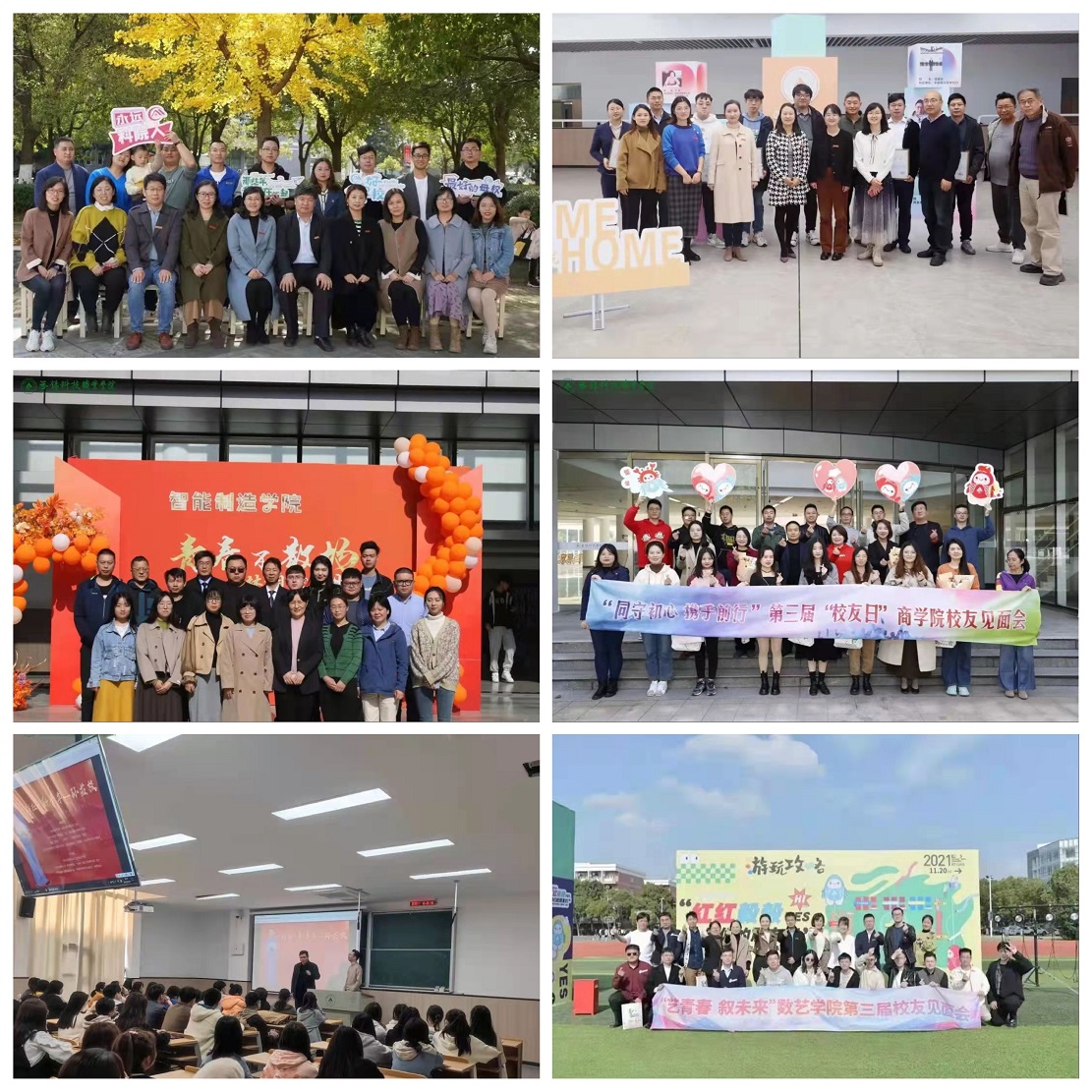 各二级学院也分别举办了校友见面会、校友经验分享报告会和校友合作会等丰富多彩的活动。人工智能学院开展“聚校友,叙情谊,畅未来”活动、校友篮球邀请赛等。物联网技术学院开展“共续师生情、同筑未来梦”座谈会、纸飞机寄语等活动。智能制造学院开展校友企业专家讲座、职业生涯规划大赛等活动。商学院举办校友见面会、“校友说”活动。文化旅游学院开展交流座谈及参观活动。数字艺术学院开展“少长咸集、畅谈今昔、经验分享”等活动。