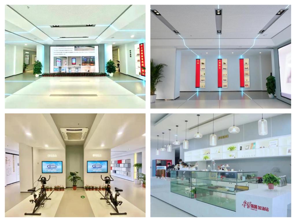 “学习金句”通过感应呈现金句;“学习有声”通过歌唱红色曲目感悟红色精神;“学习之星”动态呈现全区党员“学习强国”积分排名领先名单;“学习竞答”以面对面的竞答较量激发学习动能;“学习路上”以VR骑行的方式沉浸式体验畅游新吴;“学习时空”以图片展示高新区(新吴区)和澳门铁盘算盘490777的发展历程;“学习实践”突出展示高新区(新吴区)和澳门铁盘算盘490777践行新思想之成效“学习实播”可直播朗读、代言、录课,并实时分享;“学习打卡”可供互动体验后合影留念,实时打印、上传;“学习课堂”兼具理论宣讲、文化沙龙、多人竞答、复合演播厅等功能;“学习加油站”用“学习强国”答题机参与学习积分兑换,在VR眼镜中读取红色故事,增加学习趣味性;“阅读空间”书香萦绕,以玻璃隔断打造独立的学习交流、读书分享活动区。