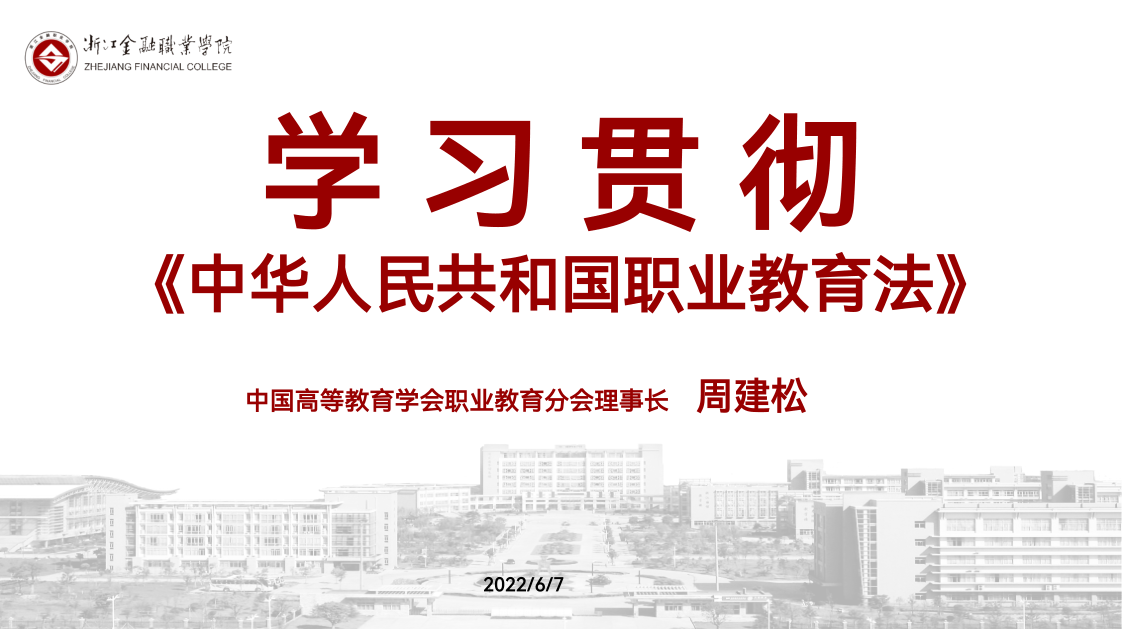 为深入贯彻落实习近平总书记关于职业教育的重要论述,贯彻落实全国职业教育大会精神,扎实推进学校高水平建设和高质量发展,6月7日,学校在博文楼报告厅组织召开党委中心组(扩大)学习会,特邀中国高等教育学会职业技术教育分会理事长、浙江金融职业学院原党委书记周建松教授来校作专题报告,为全校干部、教职工深入解读新职业教育法的相关核心要义。党委书记张国华主持报告会。全体中心组成员参加学习,全体教职工线上、线下参加报告会。