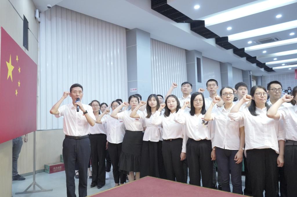 大会现场,全体新入职教师行庄重拜师礼,并在孙兴洋校长带领下进行入职宣誓。