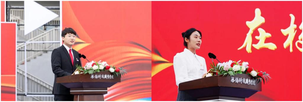 典礼上,校党委书记张国华老师为2022年全国职业院校技能大赛一等奖获得者金骏凌同学和江苏省第十二届“大学生年度人物”谢炜杰同学颁发了荣誉证书和特别奖学金。