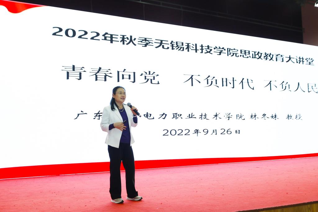9月26日,全国教书育人楷模、全国模范教师、全国优秀教师、广东水利电力职业技术学院林冬妹教授应邀为我校2022年新生入学教育作题为《青春向党 不负时代 不负人民》的思政课专题讲座,2022级全体新生及辅导员老师到场聆听了讲座,进一步提高学生的爱国主义情怀,帮助学生树立正确的思想价值观念,培养学生的责任意识和奉献精神,引导学生爱国、爱校、爱家,学会感恩,树立正确的世界观、人生观和价值观。