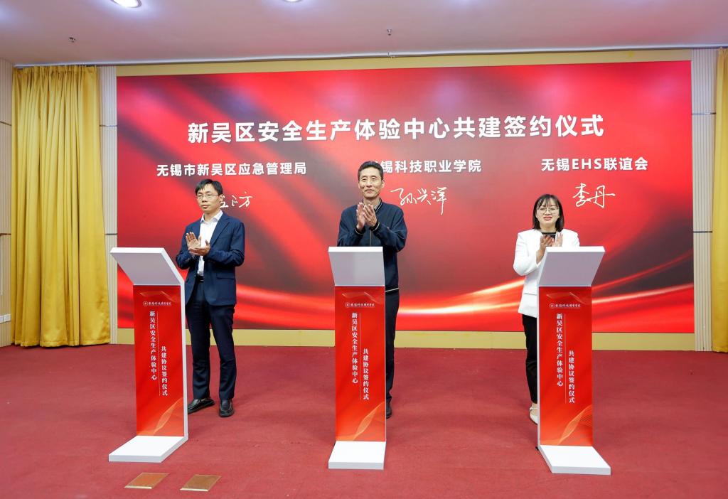 活动中,政行企校签约共建新吴区安全生产体验中心。孙兴洋代表学校接受企业捐赠。江森自控亚太区EHS总监、无锡EHS联谊会会长李丹在签约仪式上表示,“政行企校四方共建安全生产体验中心,创新构建政、校、企联盟合作模式,有利于充分发挥行业组织的专业优势,培养学生理论知识与实践操作兼备的专业能力。同时,打通了校企间的就业渠道,为学生高质量就业提供了更多选择。”