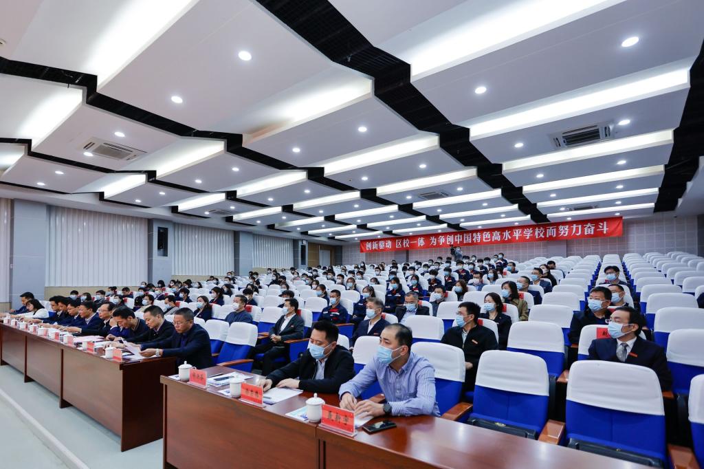 张国华在致辞中表示,学校针对应急管理高素质、专业化人才出现数量短缺、需求刚性的态势,因地制宜开设中国特色学徒制班,聘请产业教授,实施“双主体、三维度、四通道”学徒制培养模式,旨在提高安全技术管理人才的培养水平,培养一批具备安全检测、安全评价、安全管理等核心能力的现代应急管理技术技能人才,更好地服务区域企业安全生产与管理。他表示,学校将用足用好区校一体优势,继续推动教育链、人才链与产业链、创新链深度融合,为区域经济社会各项事业发展提供强大的人才支撑。
