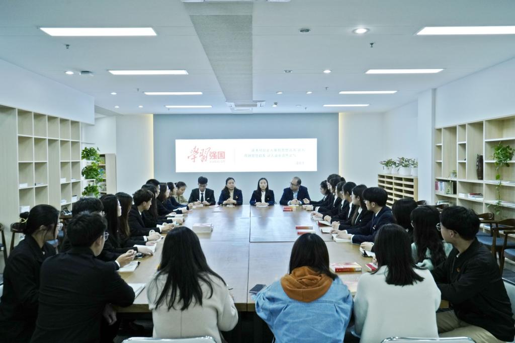 报告会后,袁彩凤代表在“学习强国”线下体验馆悦读空间与我校马克思主义学院教师及学生代表座谈交流,畅谈对于学习党的二十大精神的体会,对师生的问题逐一进行了解答阐述,并希望科院青年学子们努力学习理论知识和专业技能,不断开拓创新,自觉把个人奋斗融入民族复兴的时代伟业,让党的二十大精神在读书报国的实际行动中落地生根。