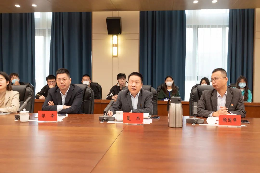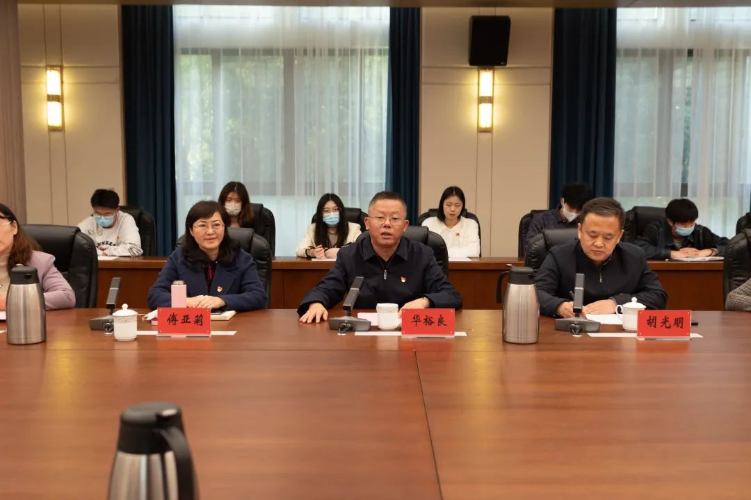 华裕良代表学校对夏杰一行表示诚挚的欢迎,就学校基本情况和发展规划作了简要介绍,并对“党建联盟”共建行动提出期望和要求。