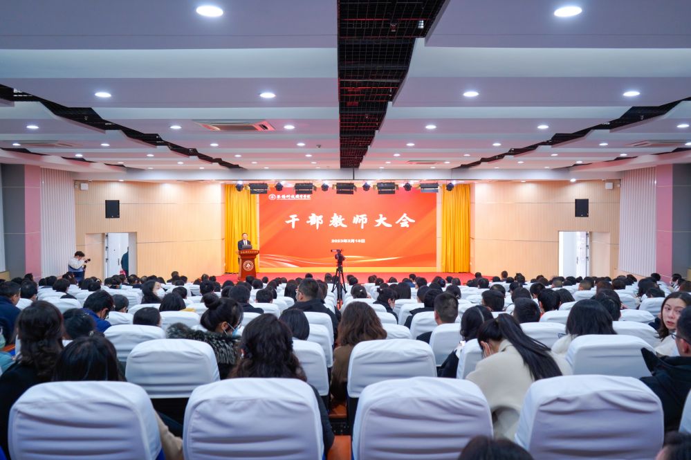 2月18日下午,学校2023年春学期全校干部教师大会在博文楼报告厅召开。会议回顾总结了学校2022年工作,全面部署了2023年工作。校党委书记张国华主持会议并讲话。校长孙兴洋作工作报告。学校全体校领导,全校教职工,物业、保安、宿管及学生代表参加会议。会议在博艺楼设分会场。