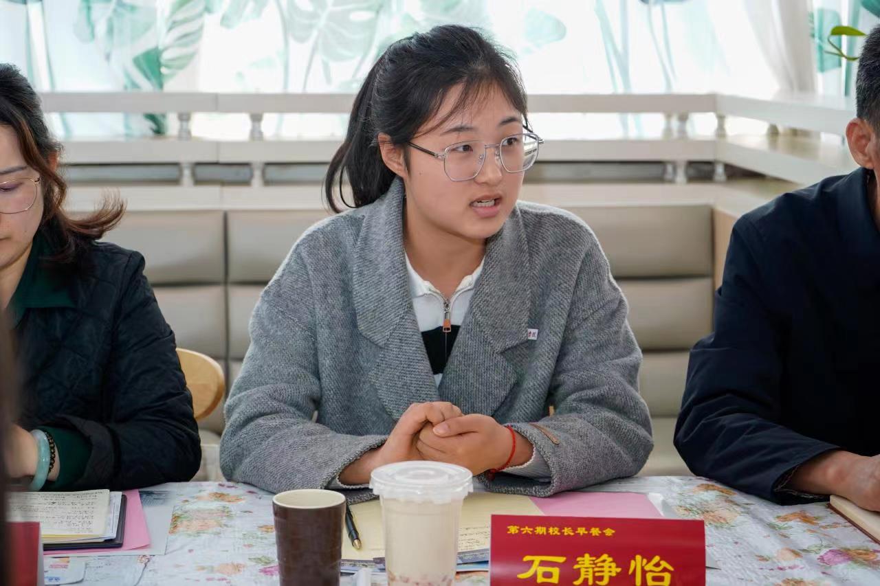 孙兴洋表示,自2019年首次举办以来,“校长早餐会”对推进学校多元主体协同治校、提升内部治理能力和治理水平,打造发展命运共同体发挥了十分重要意义,已经成为我校学生思政教育创新形式和文化校园建设的特色品牌。他对同学们踊跃报名、积极主动参与学校民主管理表示衷心的感谢。他鼓励师生共同努力,在我校建设高水平学校的重要发展机遇期,为推动学校高质量发展积极建言献策,为跻身国家“双高计划”建设单位行列贡献力量。