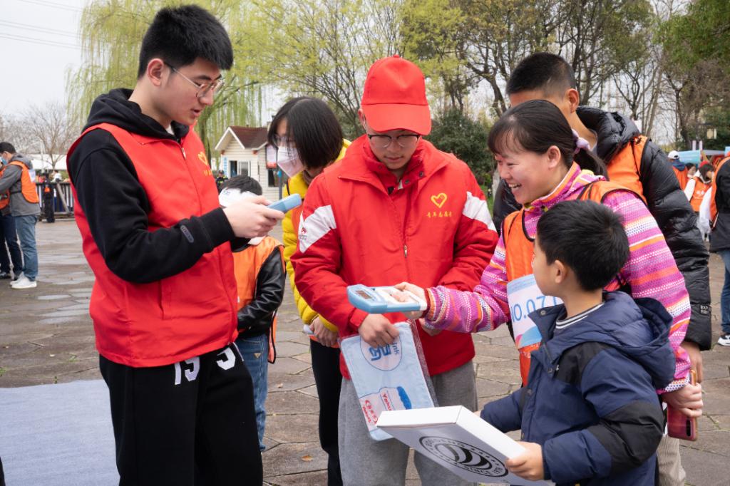 3月25日早上6点半,太阳还未升起,冒着微凉的风,志愿者们便已整装完毕,坐上了前往鸿山湿地公园的大巴。到达岗位后,志愿者们第一时间进入工作状态。当天空露出鱼肚白时,现场的一切都已准备就绪。随着选手们的陆续进场,志愿者们也变得更加忙碌起来,他们在各自岗位上进行路线引导、在物资发放处分发物资。在志愿者们引导下,参赛选手们顺利领取物资,并井然有序地进入了赛场。