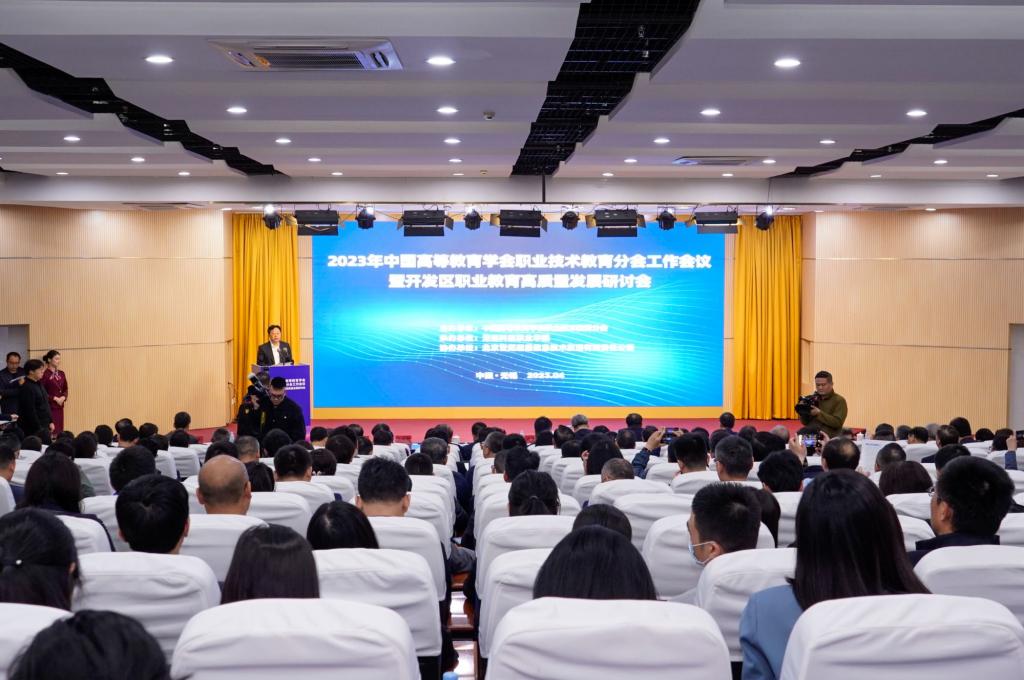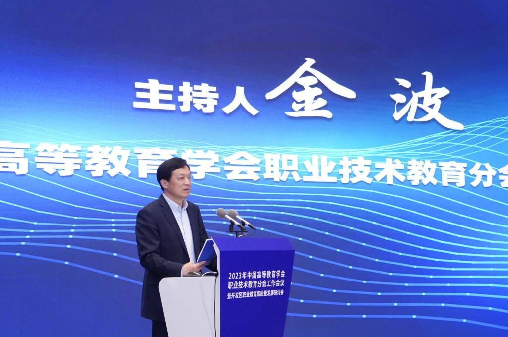全国开发区职业教育高质量发展研讨阶段,全国开发区职业教育发展联盟院校交流分享开发区职业教育改革发展中的创新实践,围绕开发区职业教育高质量发展的系统谋划、制度建设和实践探索等进行解构与探讨。中国高等教育学会职业技术教育分会监事长金波主持研讨。