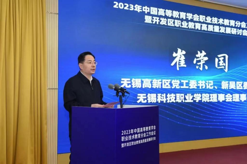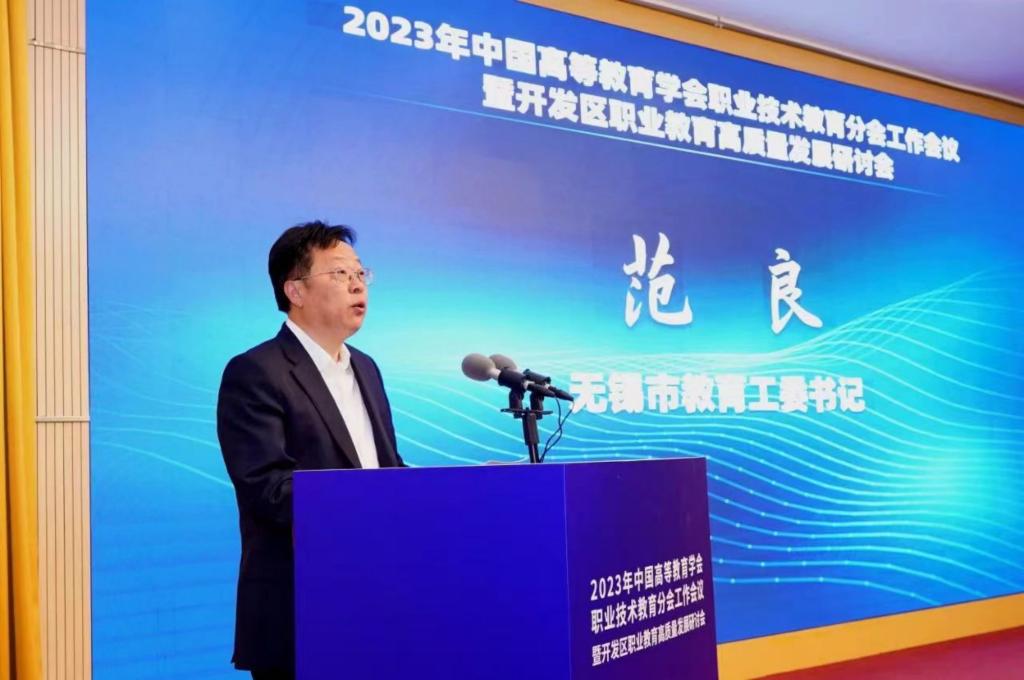 4月14日,2023年中国高等教育学会职业技术教育分会工作会议暨开发区职业教育高质量发展研讨会在无锡举行。本次会议由中国高等教育学会职业技术教育分会主办,澳门铁盘算盘490777承办,北京世纪超星信息技术发展有限责任公司协办。政行企校各界人士齐聚一堂,聚焦深化现代职业教育体系建设改革,共商职教发展、共话职教未来,共同探讨开发区职业教育高质量发展之路。
