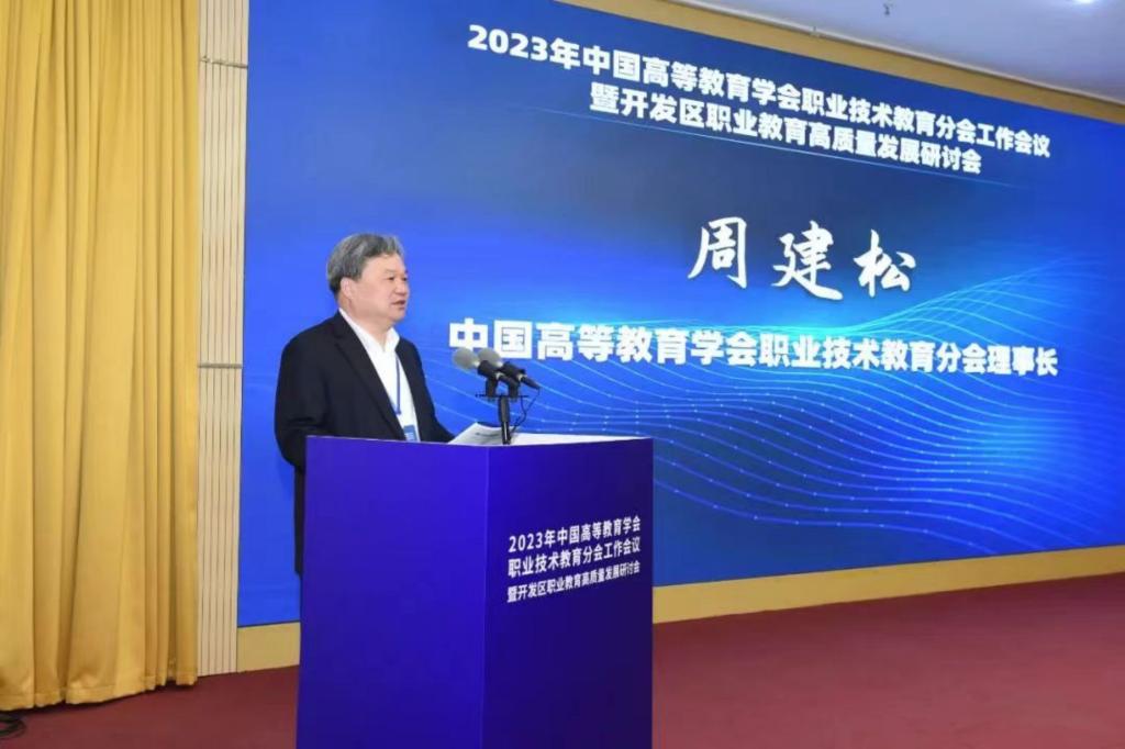 周建松在致辞中介绍了中国高等教育学会职业技术教育分会工作情况和此次会议的任务。职业技术教育分会围绕职业教育高质量发展热点问题,通过积极推进课题研究、高水平办好学术活动等,推动职业教育学术繁荣和学术水平提高。他表示,此次会议将传达学习中国高等教育学会的年度会议精神,回应教育部职成司提出的当前职业教育改革的热点问题开展课题交流,专题研讨开发区职业教育高质量发展,共同探讨职业教育的美好明天。