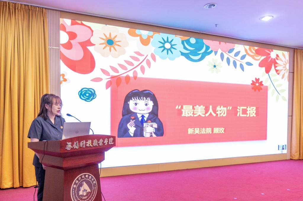 鲍宇红在致辞中表示,在全面贯彻落实党的二十大精神开局之年,在全党自上而下开展学习贯彻习近平新时代中国特色社会主义思想主题教育的当下,无锡市“最美人物”报告团走进新吴,进一步发挥“最美人物”的示范引领作用,推动社会主义核心价值观入脑入心,意义重大。她表示,“最美人物走基层”进入科院青年群体,是一堂生动的大思政课,使青年学生从中汲取精神力量,更好地推动习近平新时代中国特色社会主义思想和党的二十大精神在高校开出绚烂的思想之花。