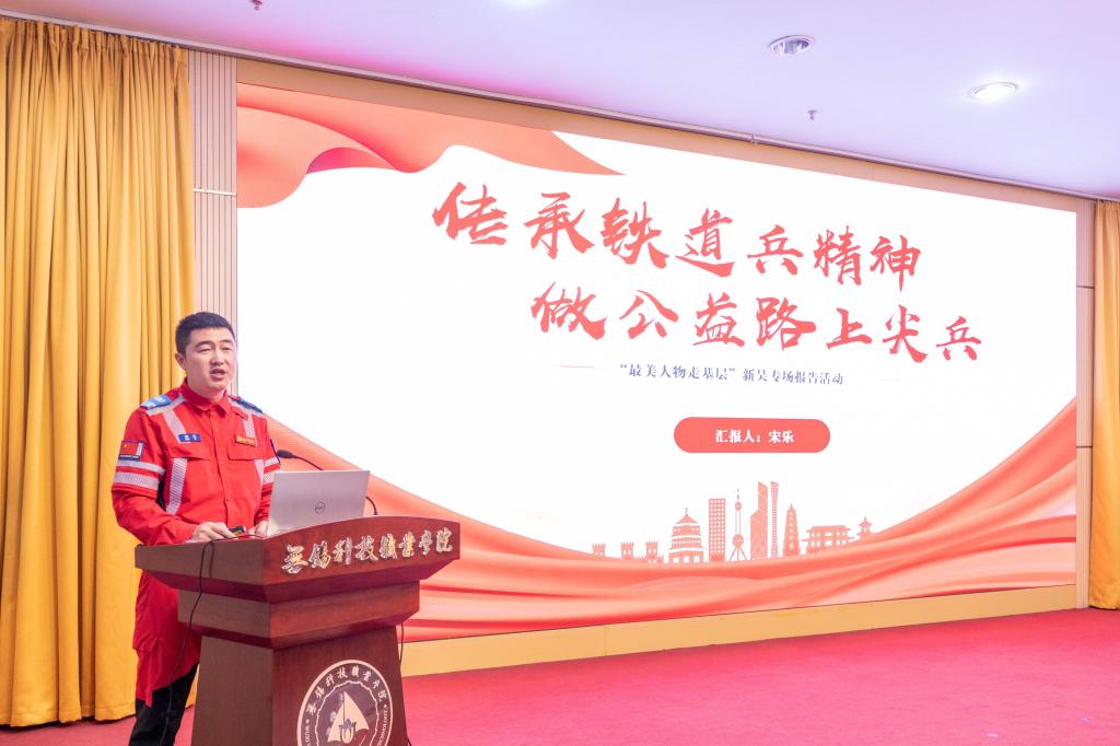 专场报告阶段,无锡市“最美人物”报告团四位成员,江苏最美基层干部周燕、无锡最美法治人物顾玫、无锡最美志愿者宋乐、无锡最美基层共产党员桑梅,作先进事迹交流分享。他们用自己的实际行动和艰辛付出,展现了基层工作的重要性和基层干部的使命感和责任心,是青年学生可亲可信可学的身边榜样,他们的事迹和经验鼓舞着广大科院青年学生将个人的“小我”融入到祖国的“大我”之中,在助力“强国梦”的大潮中收获最美好的年华。
