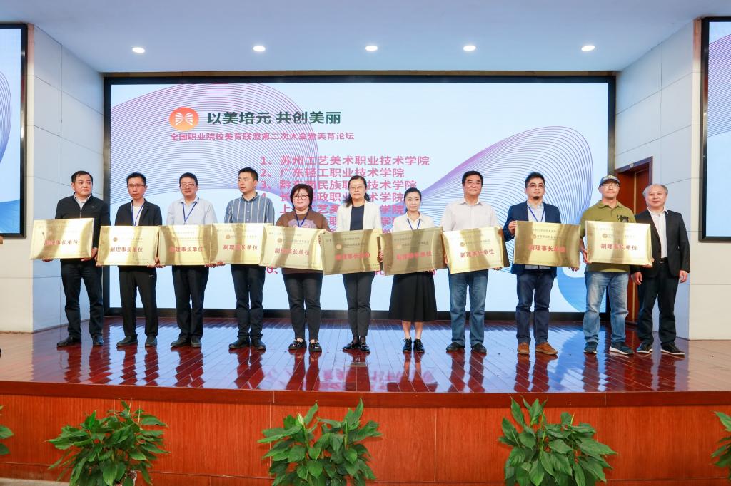 近日,由全国职业院校美育联盟主办的“以美培元 共创美丽”全国职业教育美育联盟第二次大会暨美育论坛在常州纺织服装职业技术学院召开,我校作为副理事长单位受邀参加。来自全国各地的美育领域专家学者、工艺美术大师、兄弟院校同仁、文化艺术领域和企事业单位的代表150余人参会。