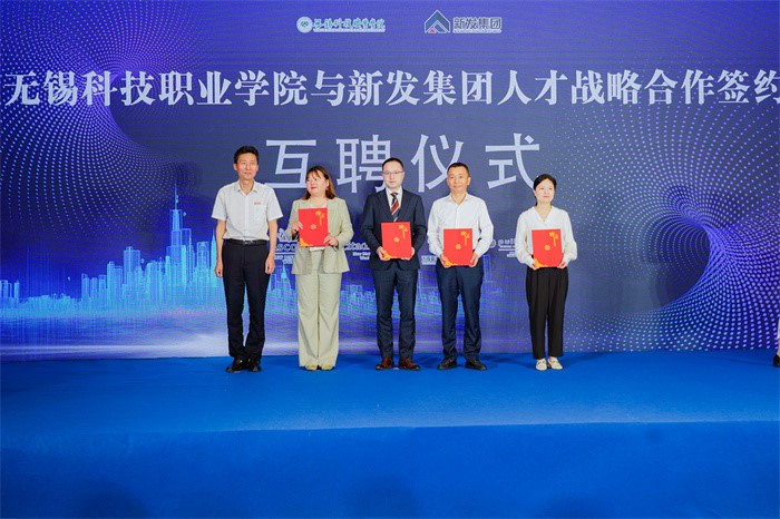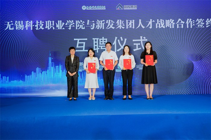 6月27日下午,我校与新发集团人才战略合作签约暨揭牌、互聘仪式隆重举行。无锡高新区党工委委员、新吴区委常委、组织部部长韩杨,无锡高新区管委会副主任、新吴区副区长孙磊,新发集团党委书记、董事长黄际洲,新发集团党委副书记、总经理鲁逸梅,我校党委副书记、校长孙兴洋,副校长邹洪芬,以及区委组织部、人社局、教育局相关负责人,学校教职工代表,新发集团党委、经营班子相关成员等政行企校相关领导和嘉宾参加了活动。