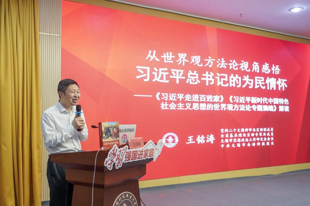 王铭涛团长通过对《习近平走进百姓家》《习近平新时代中国特色社会主义思想的世界观方法论专题摘编》两册书籍的解读,从世界观方法论视角与大家共同感悟习近平总书记的为民情怀。