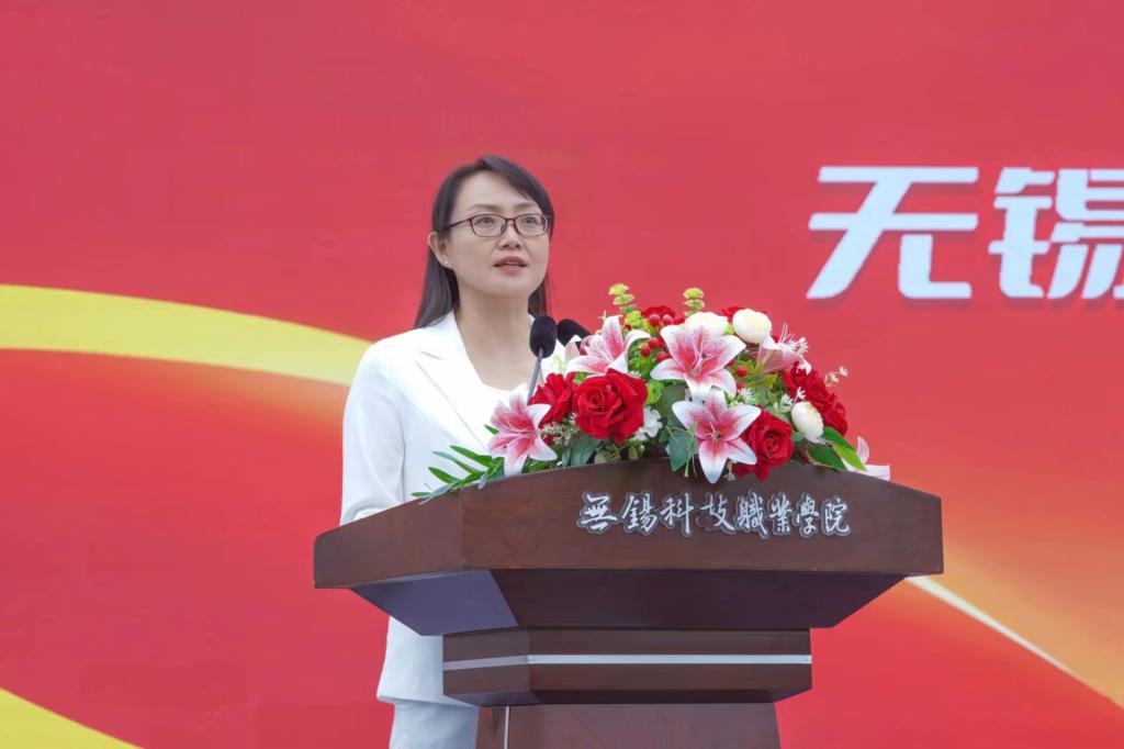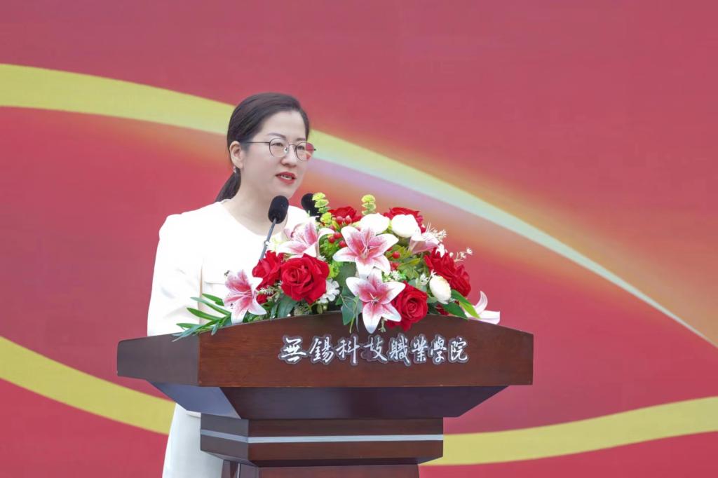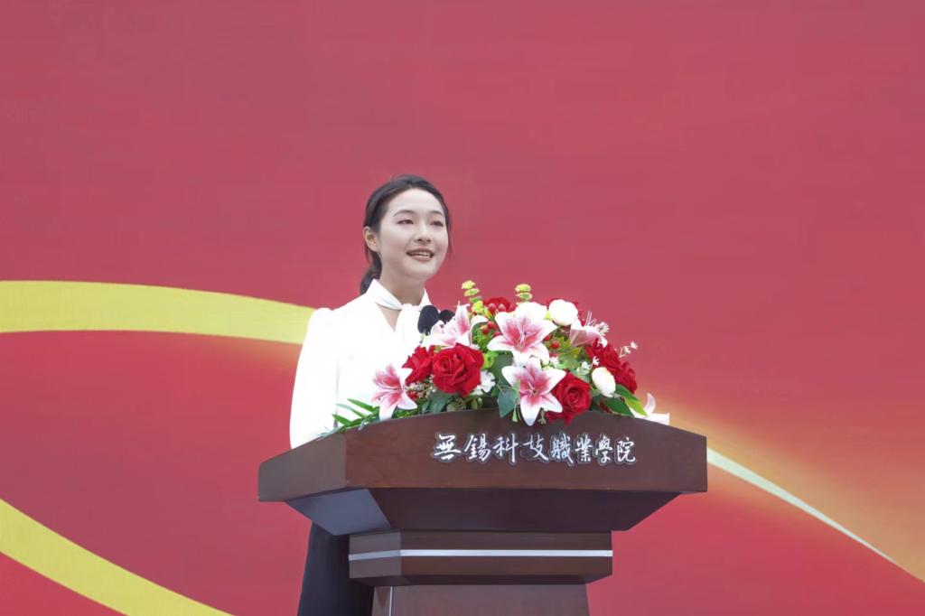 智能制造学院沈璟虹老师作为教师代表发言,她结合自己的经历和执教经验,寄语新同学们在大学阶段要有规划、会学习、知感恩,充实、快乐地度过三年大学时光。