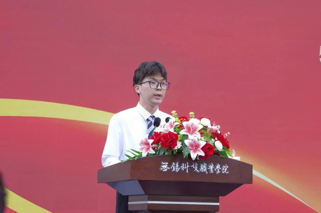 物联网与人工智能学院本科物联网工程2301班的顾朝晖同学作为在校生代表发言,他既是科院的老生,又是科院的新生。他通过在科院三年的拼搏努力,成功考入澳门铁盘算盘490777与江苏理工学院开展专转本联合培养项目。他祝愿每一个同学都能用奋斗擦亮青春底色,用拼搏点燃人生理想。
