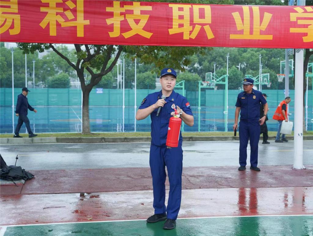 下午13:30,随着消防警报的拉响,演练正式开始。全校2023级新生从各自的宿舍内迅速、有序、安全的撤离到指定的地点;学生疏散演练完毕后,蓝天救援队在现场给同学们讲解了在遇到踩踏中造成堆叠该如何进行自救,在火灾应急逃生为躲避浓烟要进行匍匐弯腰;新吴区消防救援大队官兵开展了高空救人演练项目,并介绍灭火器的使用方法以及组织新生代表进行灭火演练。