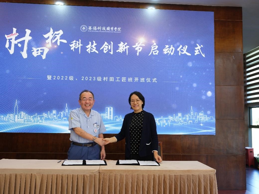 邹洪芬副校长与村田公司山田克己总经理签订了校企联合培养人才协议书,启动了科技创新节。