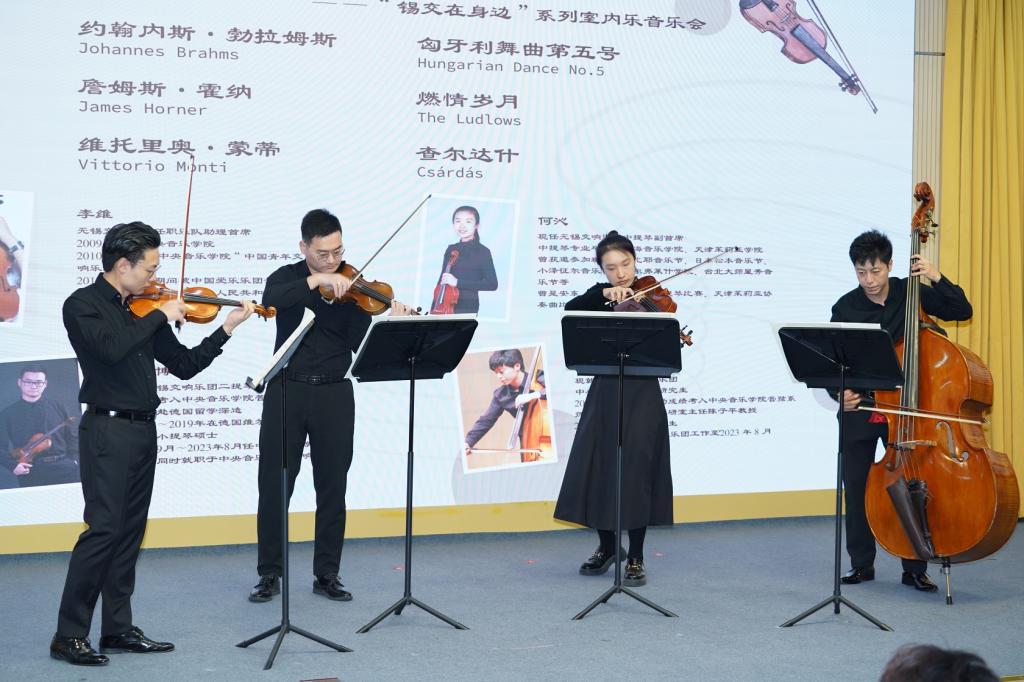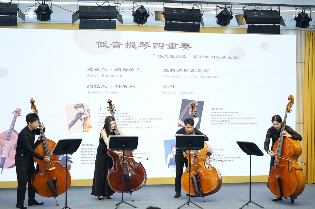 2023年11月11日,无锡交响乐团走进我校,在博文楼报告厅为我校400余名师生带来了备受喜爱的2023"锡交在身边"系列室内乐音乐会的第二站演出。