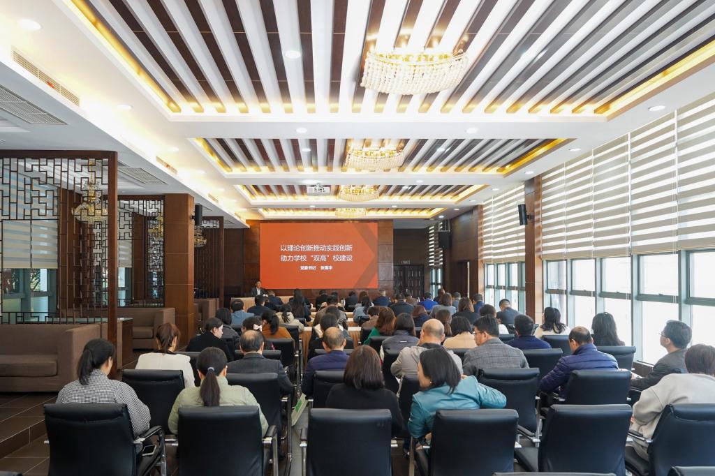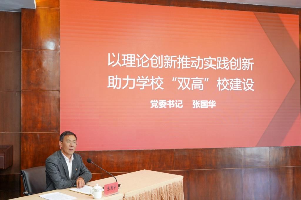 11月17日下午,校党委书记张国华围绕“以理论创新推动实践创新 助力学校‘双高’建设”主题讲授专题党课,全体校领导、全体中层干部(含挂职)参加党课学习。