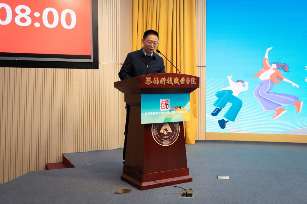 无锡市人民政府教育督导室专职副主任冯益民讲话并宣布比赛开幕。他指出,本次大赛是一次全面展示和检阅在锡各高校创新创业教育工作的比赛,通过此次大赛可以全面提振大学生创业热情,极大促进大学生创业工作。