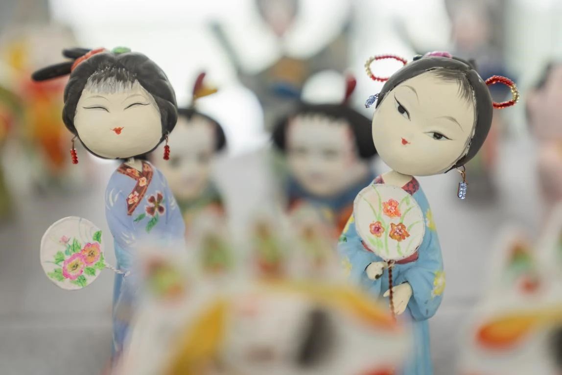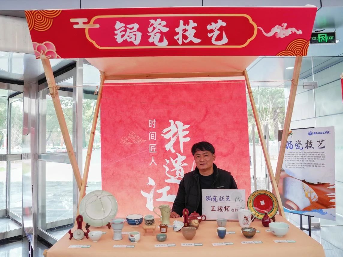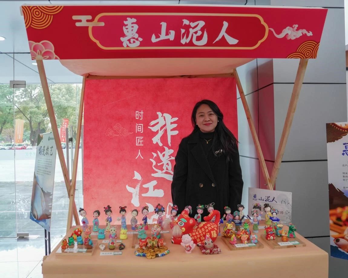 展厅中,各色非遗作品错落有致地排列在展示架上,琳琅满目,内涵丰富。有玲珑精致的紫砂壶,线条挺括有力,透出厚重的文化气息。有质朴清雅的竹刻作品,笔力遒劲,立意高拔。更有鲜明艳丽的惠山泥人,其中虎头娃娃、大阿福、金陵十三钗等系列作品引得观众驻足欣赏。而在锔瓷摊位上,各式碎裂的瓷器被赋予全新的生命,呈现出独特的美感。