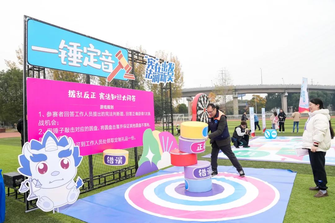 法治文化节现场,新吴区人民法院、新吴区人民检察院、新吴区司法局、新吴公安分局等二十多家单位设立创意市集,开展“法律面对面”活动,普及法律知识、为群众答疑解惑,在轻松愉快的氛围中开展法治宣传教育,受到了热烈的反响。现场还精心设计了法治飞行棋、法治创意手工、幸运转盘、发电动感单车、一锤定音、足球飞镖等互动项目,将现场活动氛围再次推向高潮,以新颖有趣的形式、轻松愉快的互动体验,让群众、师生在参与游戏的同时收获法律知识,提高法治素养,在“法治道路”上一路前行。
