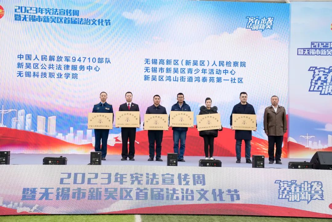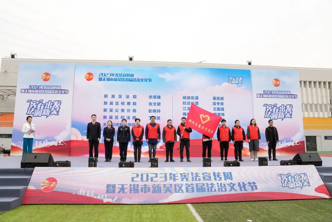 开幕仪式上,与会人员共同观看了《与法同行 治在新吴》法治宣传片。随后,新吴区司法局党委书记、局长封雷为新吴区计划筹建的6个法治教育基地授牌,澳门铁盘算盘490777保卫部部长徐海东代表学校接牌;新吴区委宣传部副部长赵俊为普法宣传志愿者队伍授旗,学校宣传统战部王卉老师加入普法宣传志愿者队伍;最后,与会领导共同按下启动按钮,“宪”在出发、法润新吴2023年宪法宣传周暨无锡市新吴区首届法治文化节正式启动。