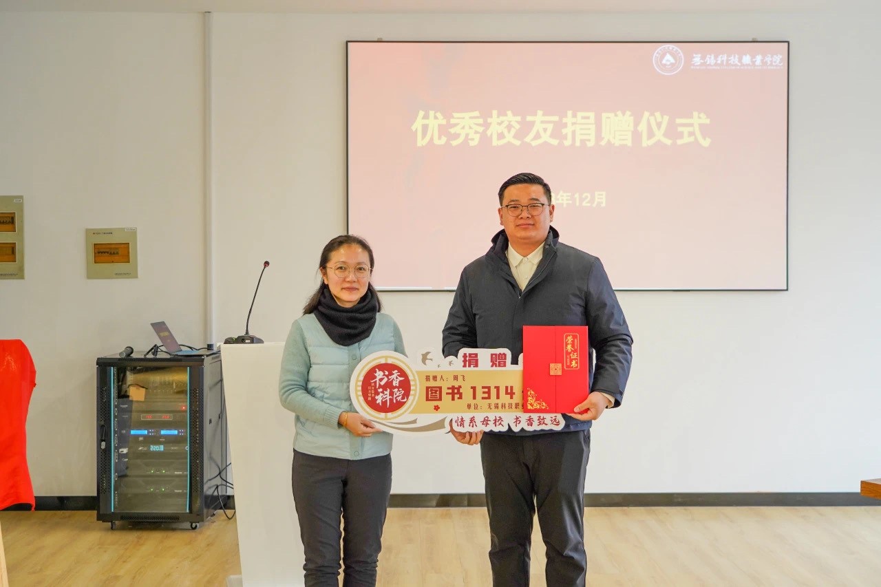 12月18日下午,无锡敏达文化有限公司向学校捐赠图书仪式在我校图书馆举行。我校校友、无锡敏达文化有限公司董事周飞,校党委副书记华裕良,学生工作处处长杨玲燕,校友工作办公室负责人季莹,图书馆馆长钱雯,商学院党总支书记陆雨锋、副书记戴媛媛以及辅导员、班主任、学生代表出席仪式。