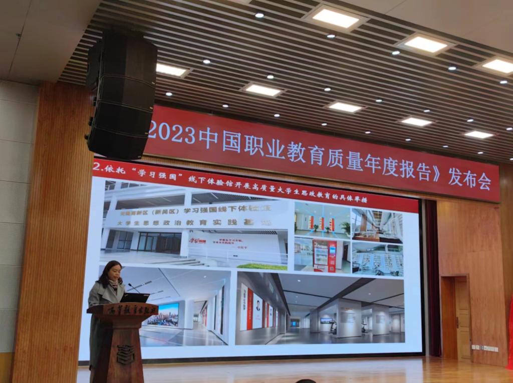 《质量年报》从人才培养、服务贡献、文化传承、国际合作、产教融合、发展保障、面临挑战等七个方面向社会展示2022年中国职业教育改革发展的新变化和新成果,我校“学习强国”线下体验馆思政育人特色实践入选《2023中国职业教育质量年度报告》典型案例。