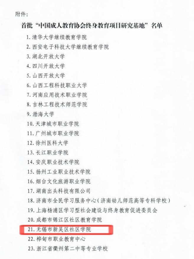 社区学院获评首批国家级“中国成人教育协会终身教育项目研究基地”