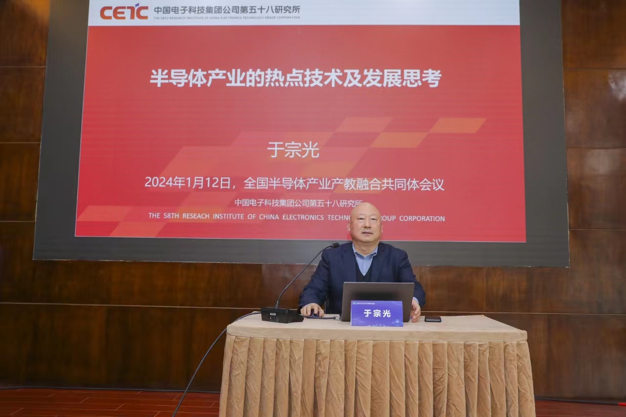 专家报告会阶段,共同体理事长单位代表、中国电子科技集团公司首席科学家于宗光、北京劳动保障职业学院发展规划处处长孙辉分别作《半导体产业的热点技术》《以产教融合共同体建设推动现代职业教育体系建设改革》专题报告。