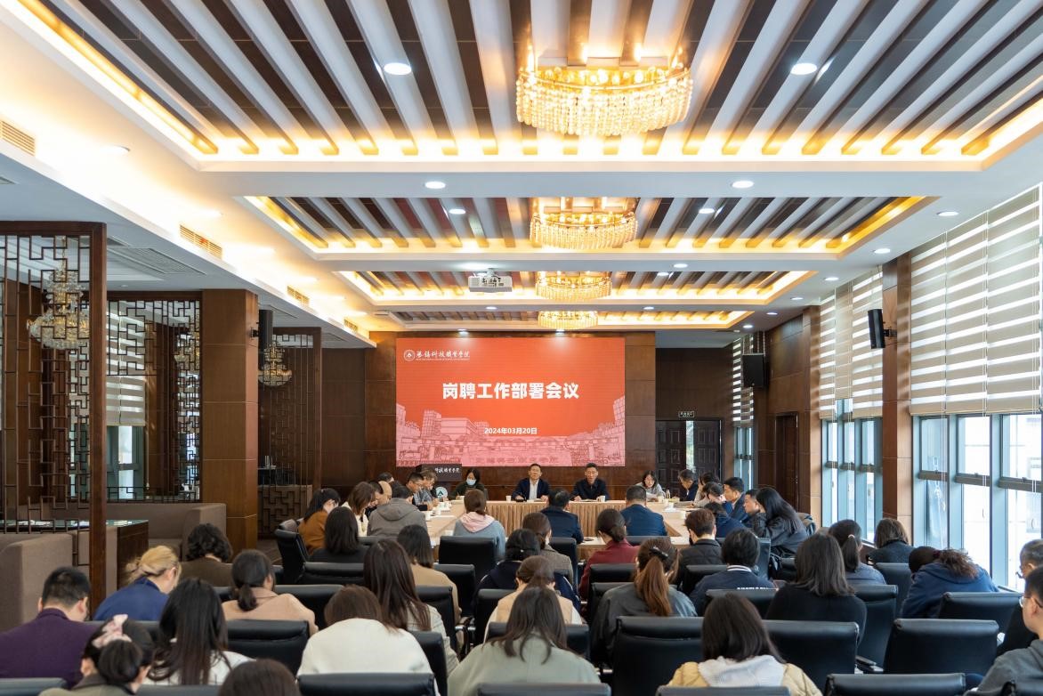 3月20日下午,学校新一轮岗位聘用工作部署会议在培训中心一楼会议室召开。校党委书记张国华、校长孙兴洋、副校长邹洪芬等出席会议,会议由校长孙兴洋主持。