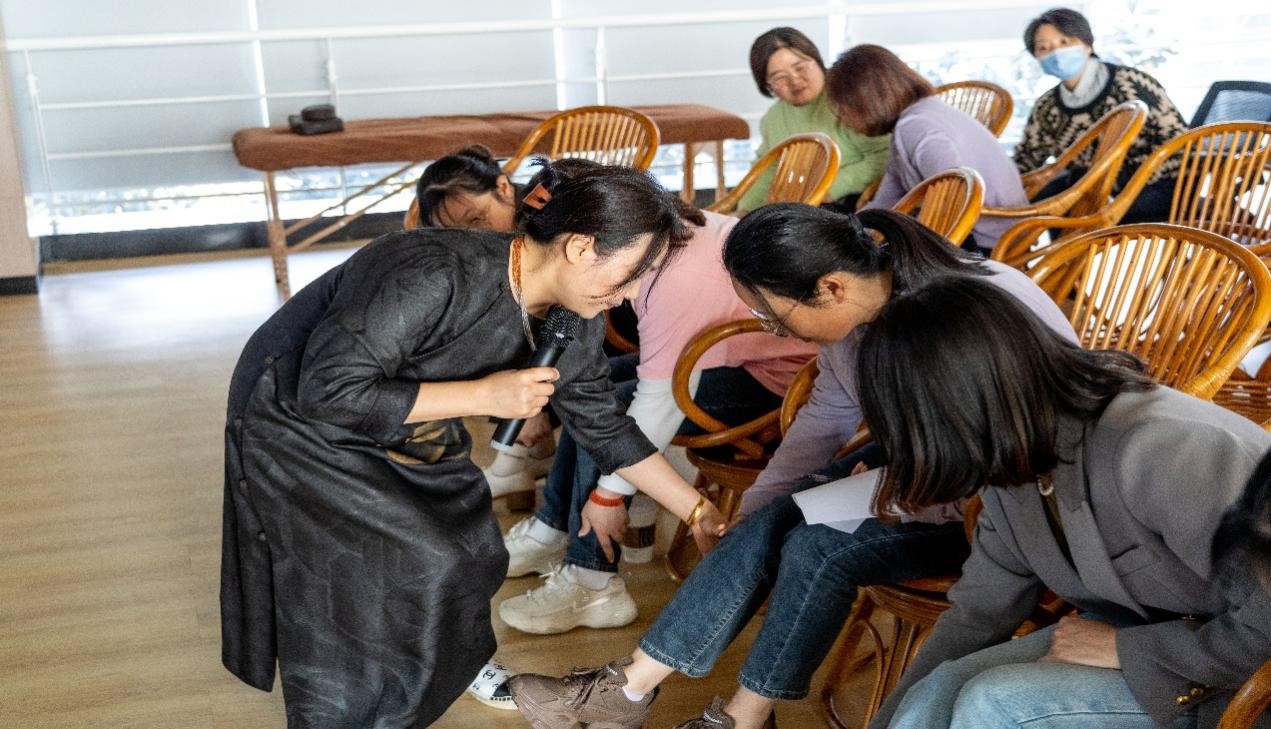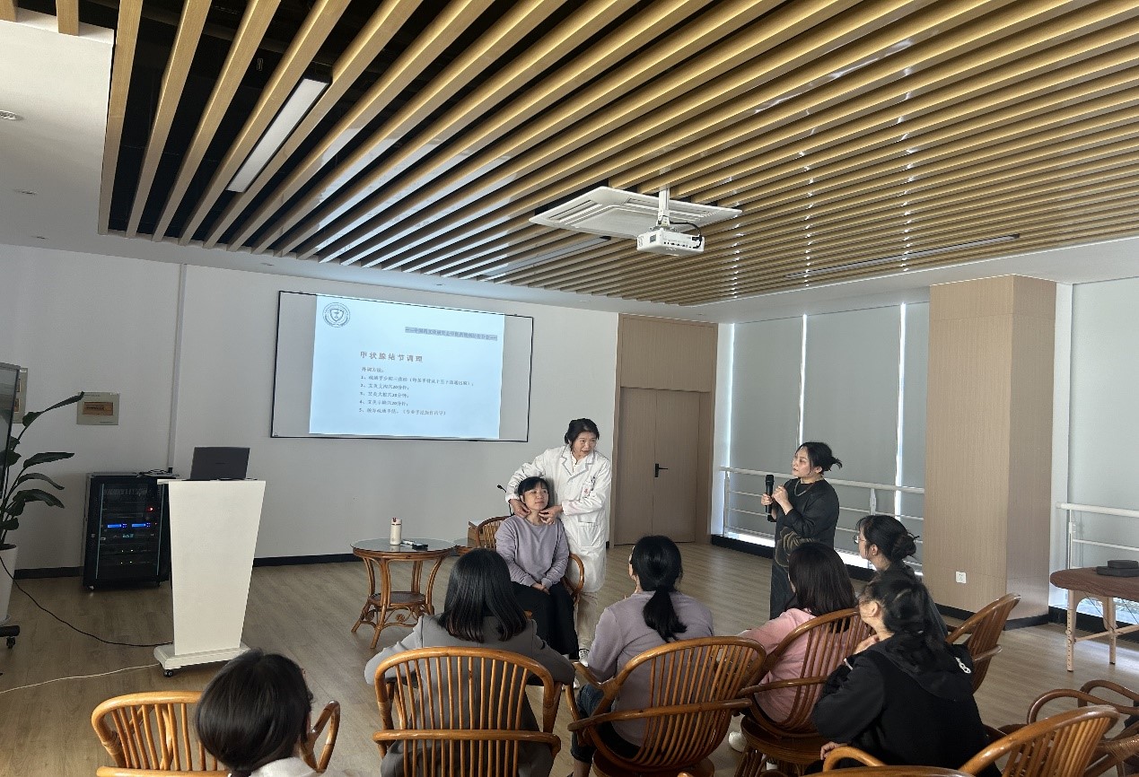 谭医生结合自身临床工作经验,从健康养生理念、中医养生方法、女性养生知识等方面运用大量的理论和实践经验进行讲解,并重点针对高校教职工工作、生活、家庭压力大等问题,全方位从生活、饮食、起居、睡眠、运动习惯等角度进行了保健方式方法的科学指导。讲座现场还设有互动环节,谭医生和四位助理讲师为女教职工们进行了一对一问诊和按摩理疗。