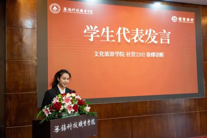 文化旅游学院社管2202班徐缪语昕同学代表获奖学生发言。