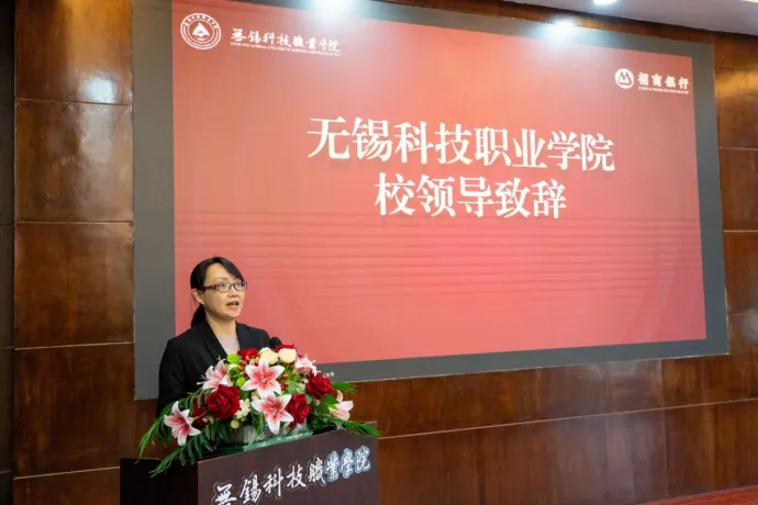 韩宁副校长对招商银行股份有限公司无锡分行一行的到来表示热烈欢迎,感谢招商银行股份有限公司无锡分行倾情资助学校优秀学子。同时,她对获奖学生提出希望:要永葆感恩之心,要珍惜大学时光,珍惜所获的荣誉,努力学习、勤于实践,用奋斗的姿态来开启人生画卷。祝愿与招商银行的合作之花常开、友谊之树常青。