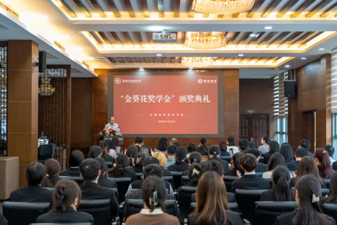 陆明宇行长对我校给予招商银行股份有限公司无锡分行的多方支持表示感谢,并向获奖同学表示热烈祝贺。他强调,“金葵花”代表着向阳而生的活力,希望获奖的优秀学生能在未来的生活中展现向阳而生的正能量。