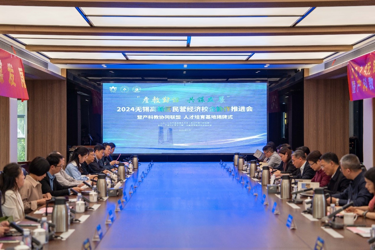 为贯彻落实《中共中央国务院关于促进民营经济发展壮大的意见》,推动无锡高新区民营经济高质量发展。4月29日,由中共无锡高新区党工委(新吴区委)统战部主办,我校与无锡市专精特新企业联盟承办的2024无锡高新区民营经济校企协作推进会暨产科教协同联盟、人才培育基地揭牌仪式在我校培训中心成功举办。