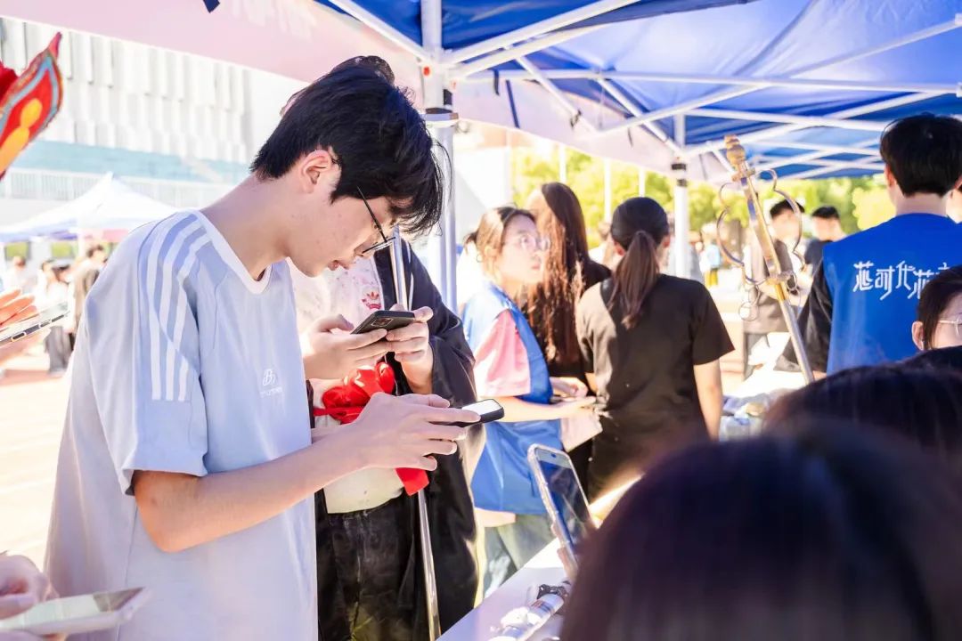 整个路线跑完后,所有同学在操场的终点打卡处签退,并领取活动纪念品。大学生艺术团为同学们精心准备了校园文化艺术作品展演。