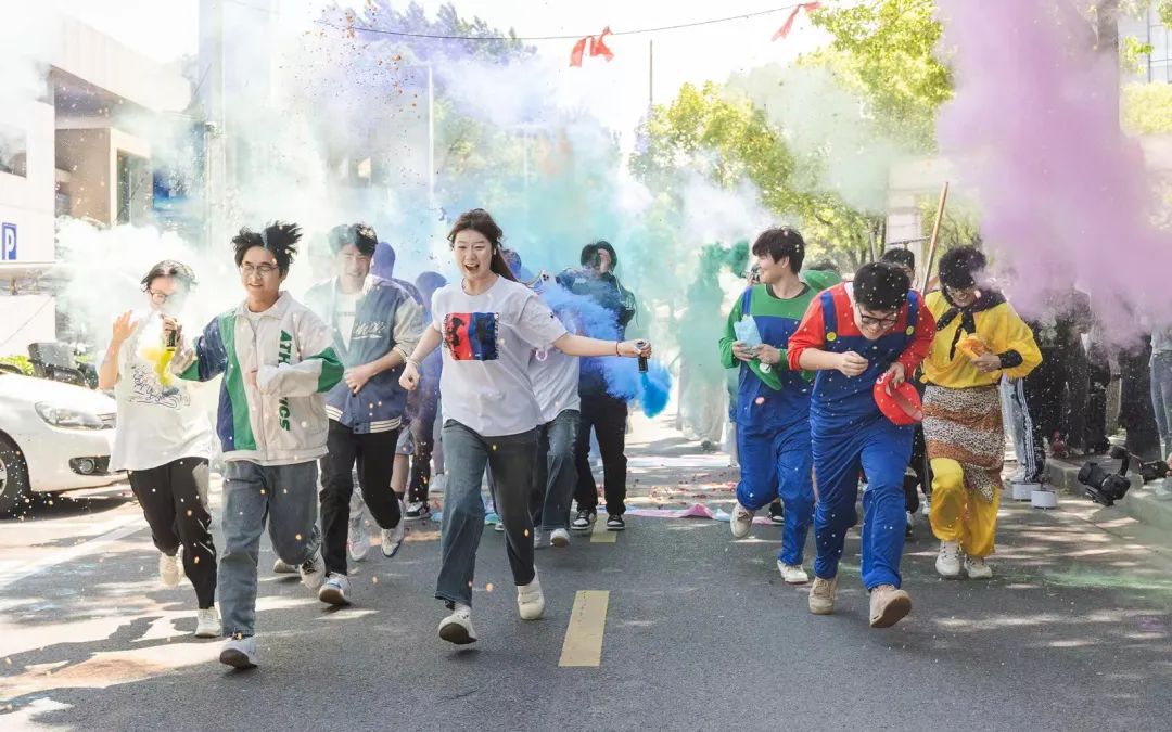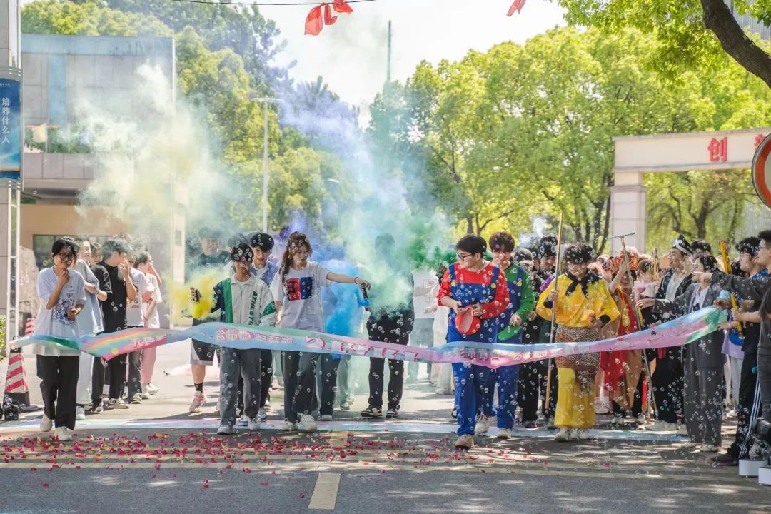 热身活动结束后,参与的同学们随着发令,在彩色泡沫中沿着校园路线出发。