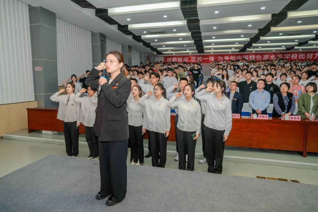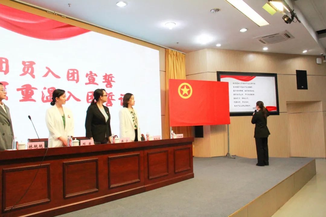 青春启航,闪耀现在。会上宣读了新团员名单,并向新团员颁发团徽和团员证。随后,新团员们进行入团宣誓,老团员重温入团誓词。全体人员举起右拳,面向团旗庄严宣誓,誓言铿锵有力,以坚定的信念和决心展现出青春迸发的能量。