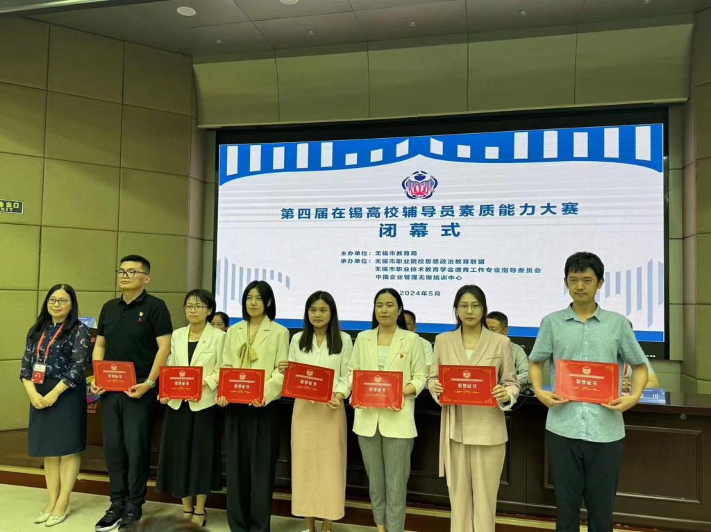 5月24日-25日,无锡市第四届在锡高校辅导员素质能力大赛在中国企业管理无锡培训中心圆满落幕,大赛深入考察了参赛辅导员的理论深度、专业素养以及应对实际问题的能力。经过激烈角逐,我校辅导员郑莹老师和李璐丹老师分别获一等奖和二等奖,我校荣获优秀组织奖,充分展示了我校辅导员队伍良好的职业素养和能力水平。