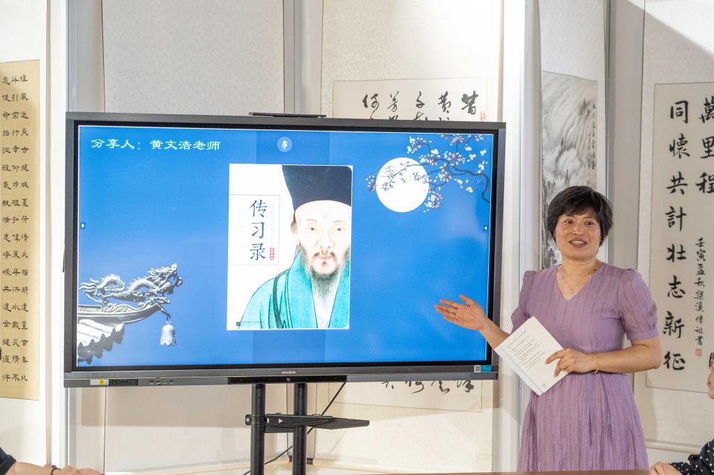 围绕“同心筑梦 共品华夏”主题,知联会副会长陈日月老师为大家分享了蒋勋先生的《写给大家的中国美术史》,这本书系统地阐述了中国美术史的发展脉络,在分享书籍的同时陈老师结合自身的美术学习经历,探讨了艺术、生活与职业的平衡发展,以及艺术对个人成长的影响。黄文浩老师分享了明朝哲学家王阳明的《传习录》,王阳明的心学是中国传统文化中儒、释、道之集大成,黄老师感悟道“诚意正心、知行合一”在教书育人中的重要性,需领会真理不是向外求,而应该回归自己的本心,用良知发端作为一切行为的唯一准则。李晓莉老师分享金惟纯先生的《人生只有一件事》,与大家一起感受书中有哲理的句子,并指出当面对工作和生活中难题的时候,只有从自己的起心动念开始调整,才能拥有成功的事业、幸福的人生。